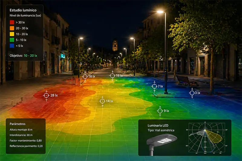 Evaluamos niveles, uniformidad y cumplimiento normativo para cada zona.