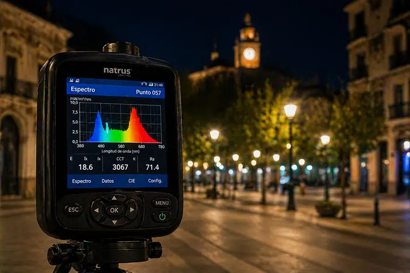 Análisis espectral para evaluar el impacto de la luz en el entorno y en el cielo nocturno.